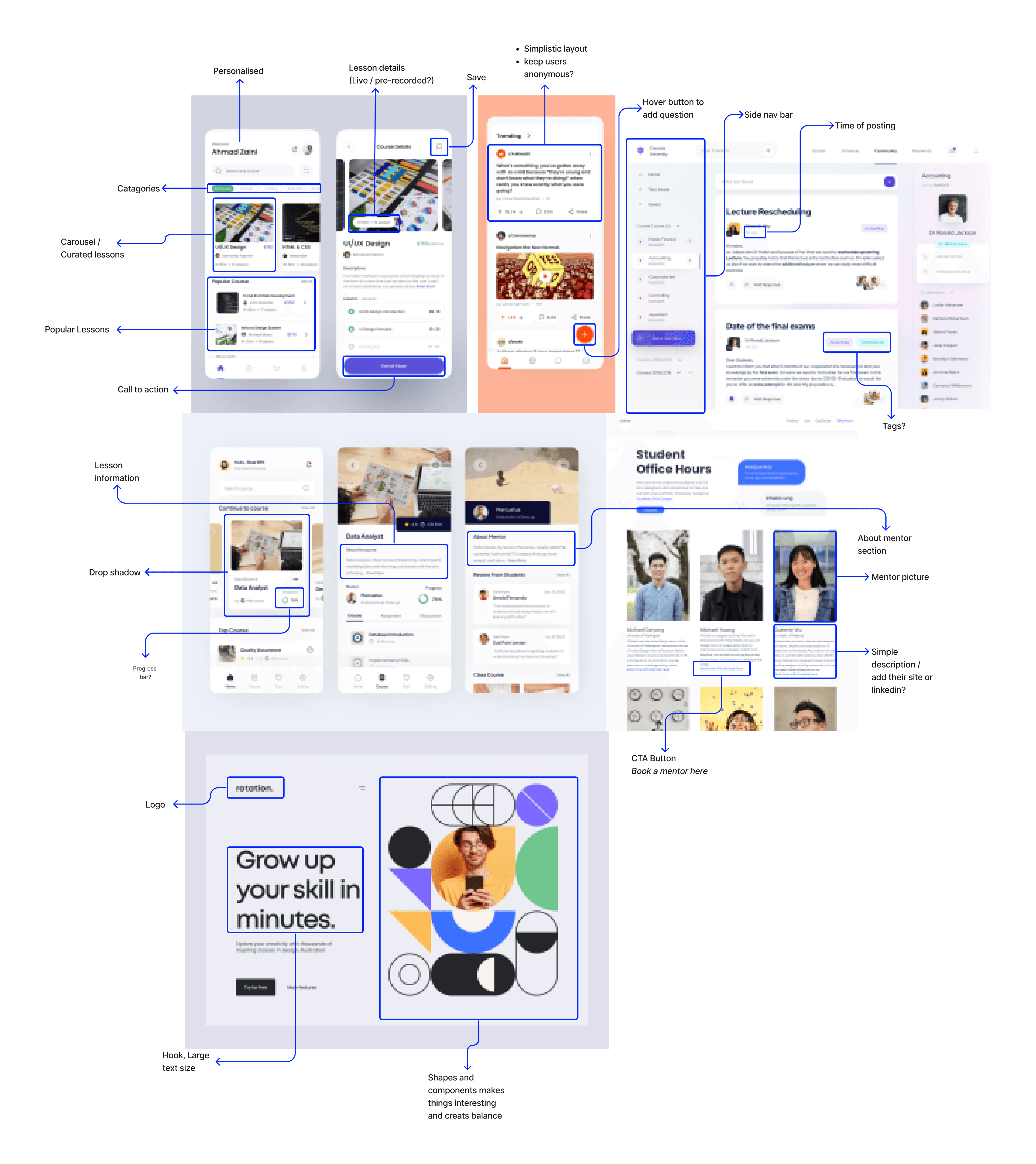 Working on the user flow through the perspective of our mentors and their experience with the product, due to a time limit this was not something we were able to consider during the designation as they are also our main target users.