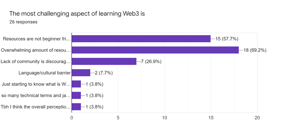 Our first objective was to conduct user research to identify the challenges users faced when trying to learn web 3 and possible pain points we can tackle.