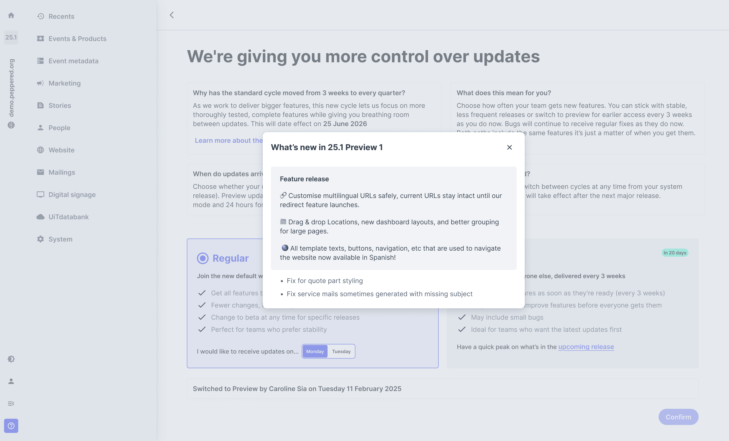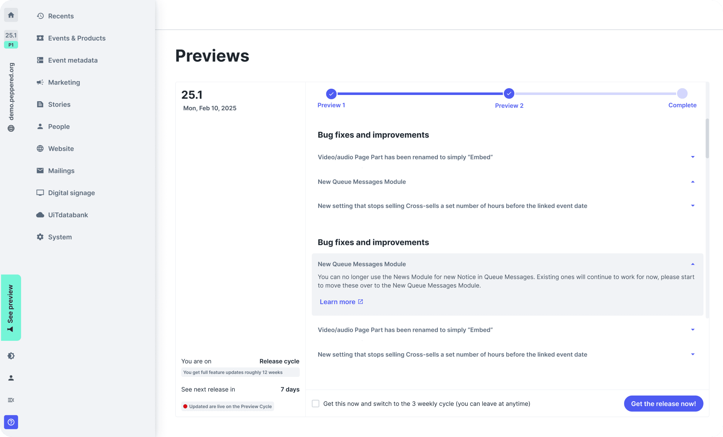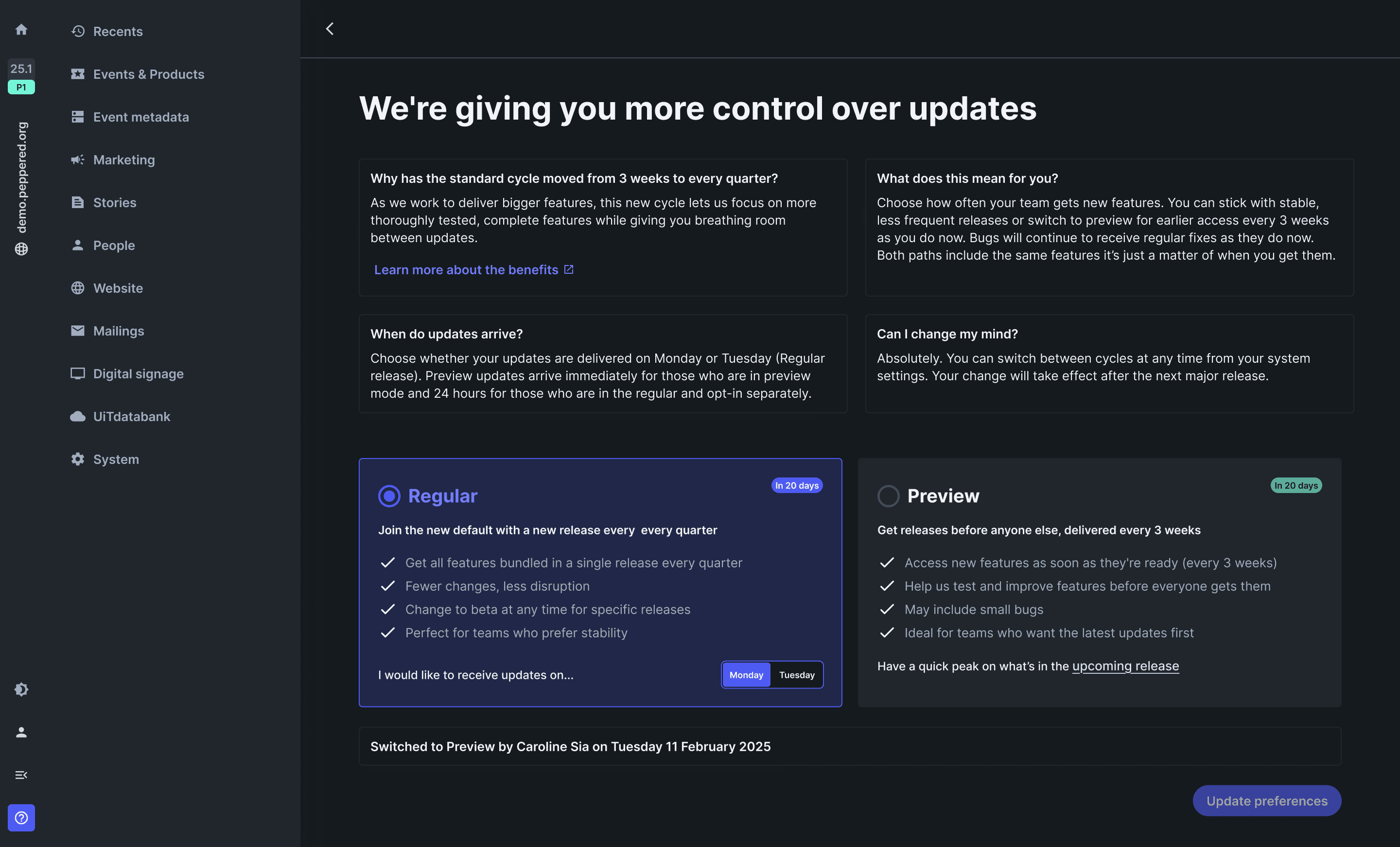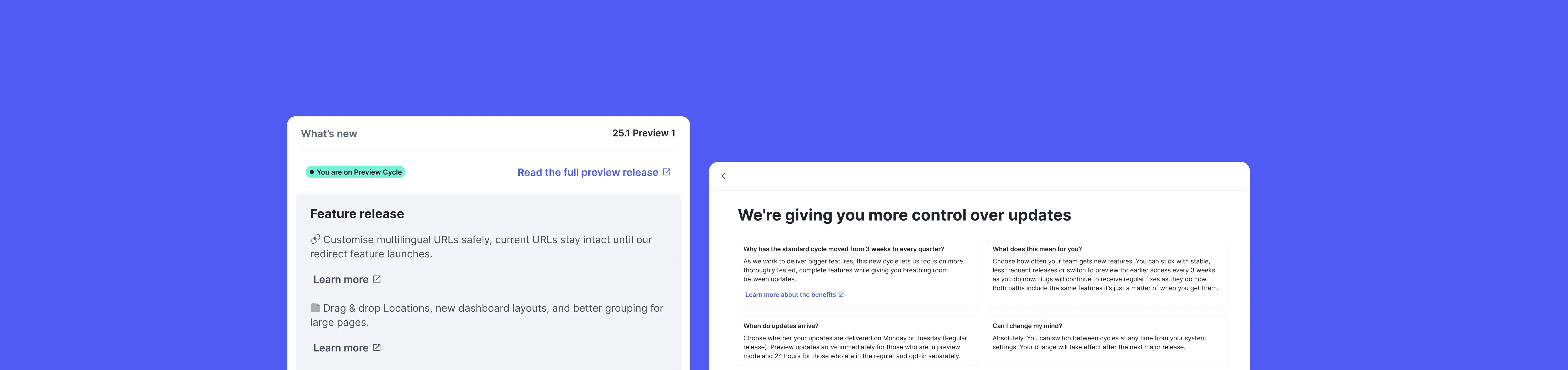 Preview users will get mini release notes every 3 weeks, which build towards the full release notes. Users will have access to new updates sooner as a way to help us test new features and changes before we roll them out to the wider public at the end of the quarter.