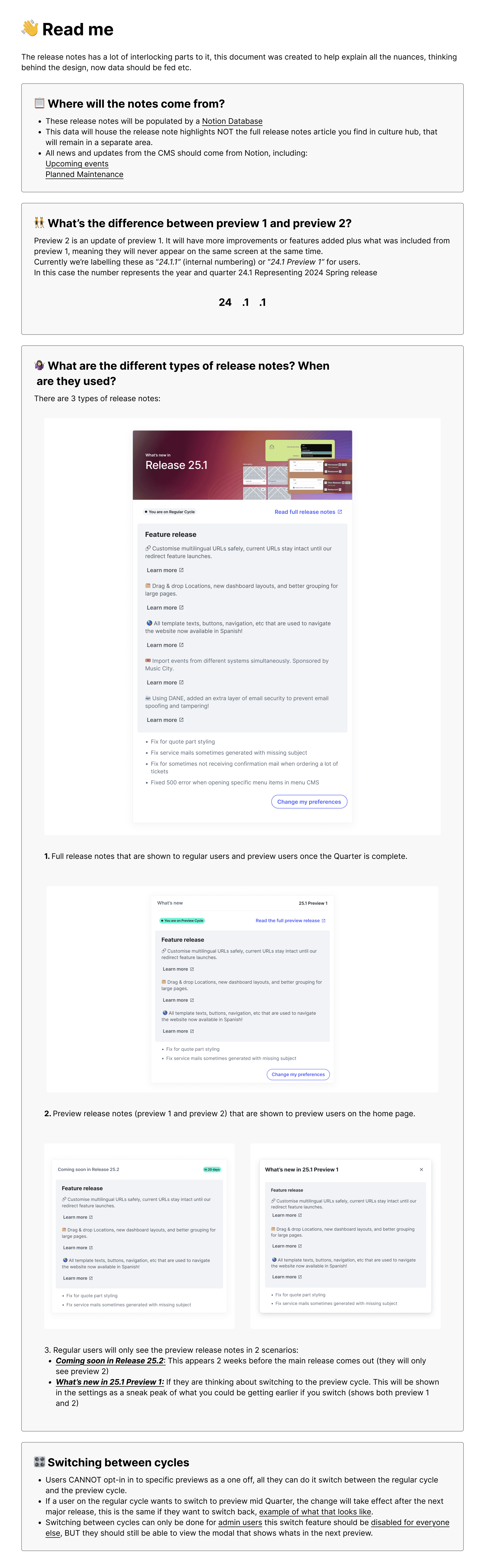 Different type of release notes, and when they should be surfaces and for which type of user?