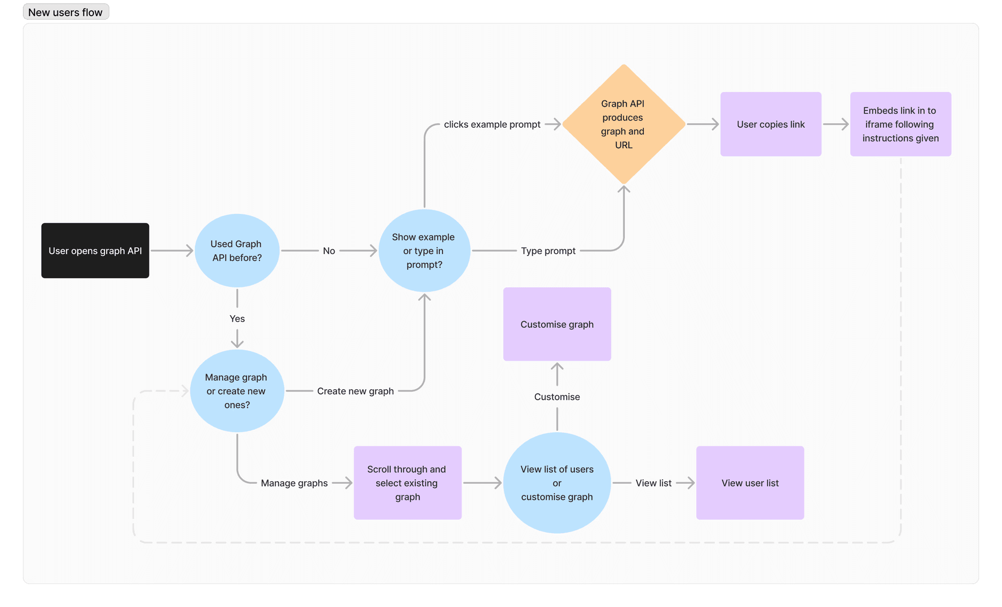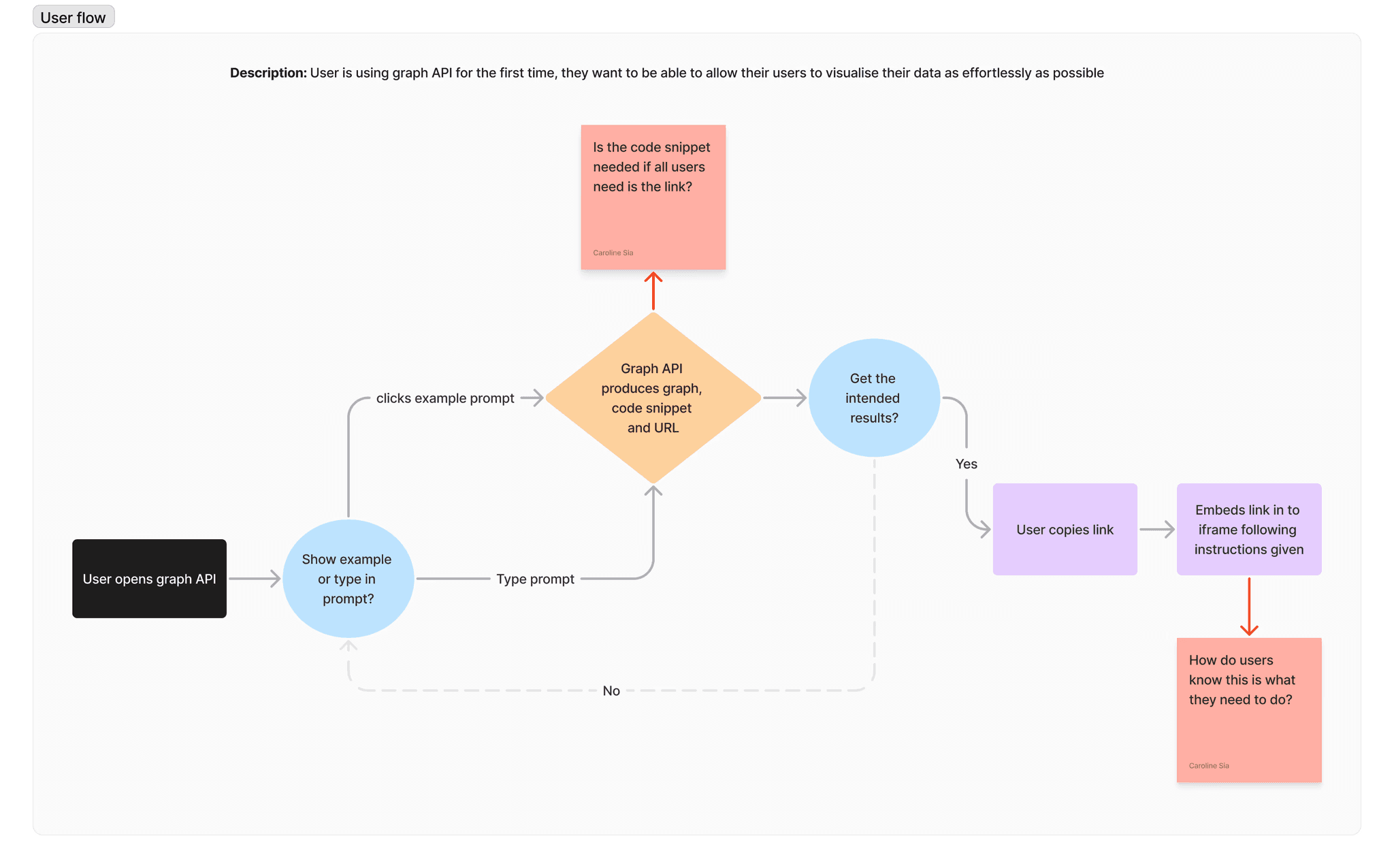 Whilst trying out the product I found a couple of problems that may effect with users experience, so I made a flow of how users should flow through the product and found that Graph API wasn't as straight forward as it was meant to be, to validate these problems, I did a usability test asking users to walk me through how they would use Graph API in the end we found that: