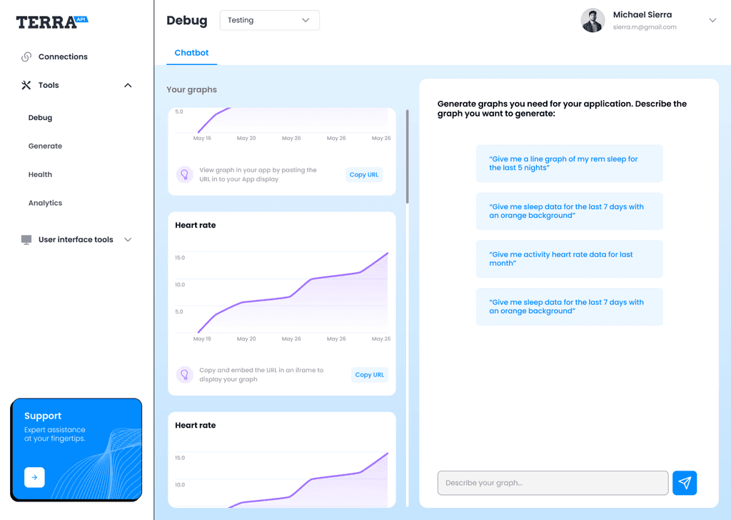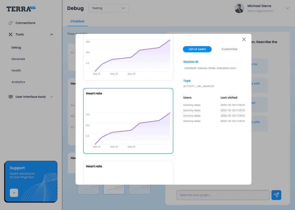 As the solution to our painpoints, users are able to create new graphs using the chatbot on the right and manage exsiting ones on the left.