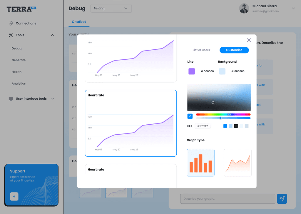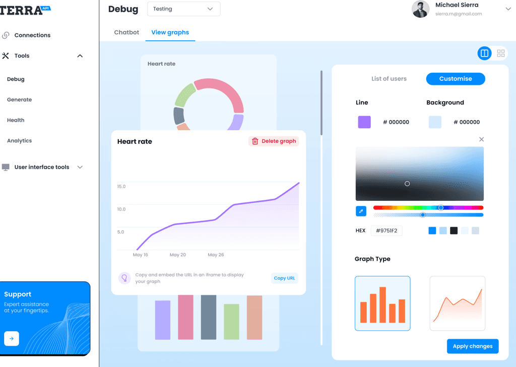 As our customers are other businesses, allowing them to be able to customize graphs to their branding is important, allowing for more personalisation is something I would like to implement